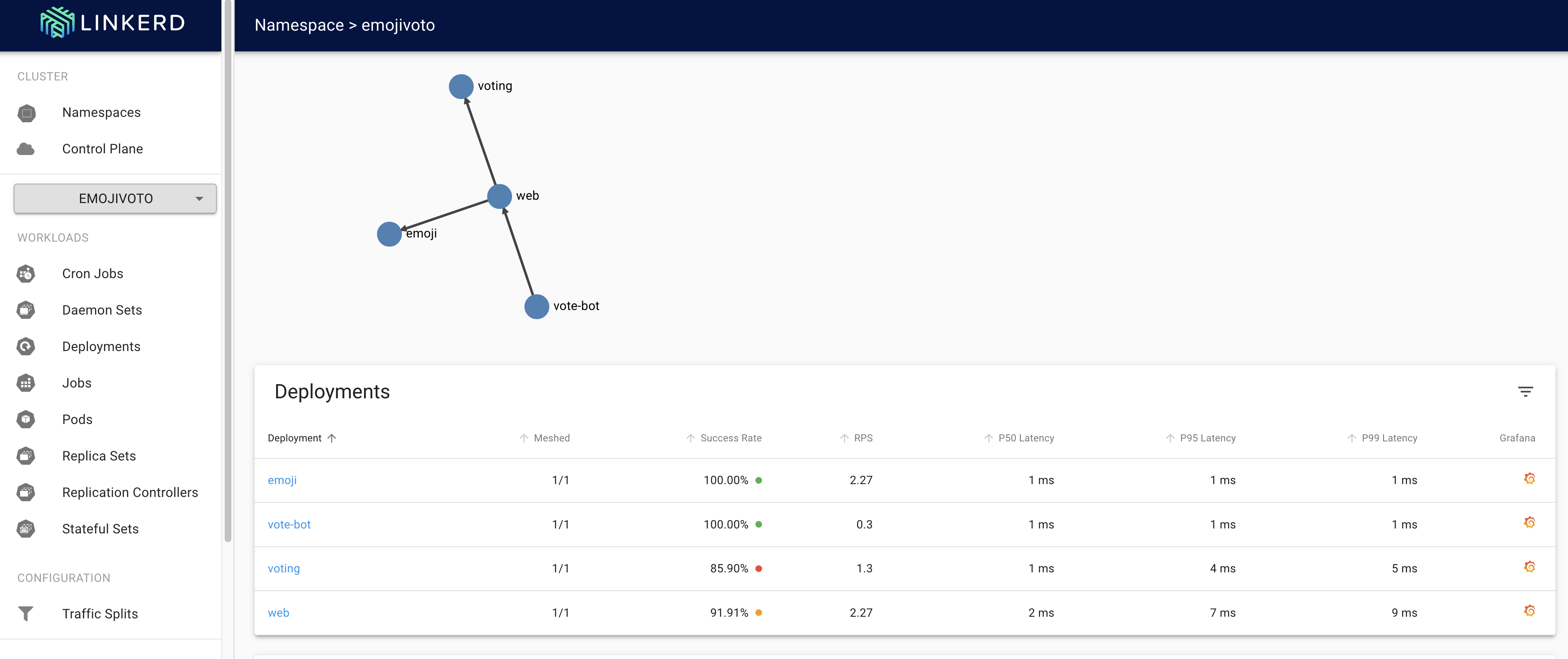 이제 배포한 앱에 linkerd가 작동되고 있다